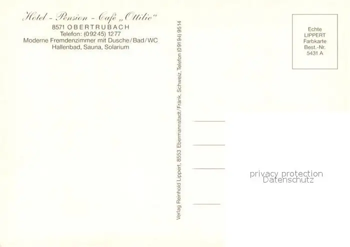 Obertrubach Hotel Pension Café Ottilie Obertrubach postalisch nicht gelaufen nach 1965 Erhaltung siehe scans [FriedD77] Frierer
