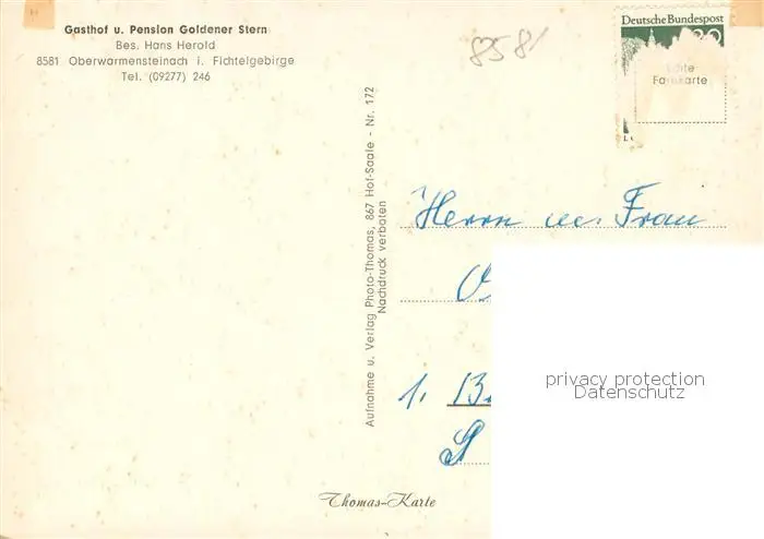 Oberwarmensteinach Gasthof Pension Goldner Stern Oberwarmensteinach postalisch gelaufen nach 1965 Erhaltung siehe scans [FriedD77] Frierer
