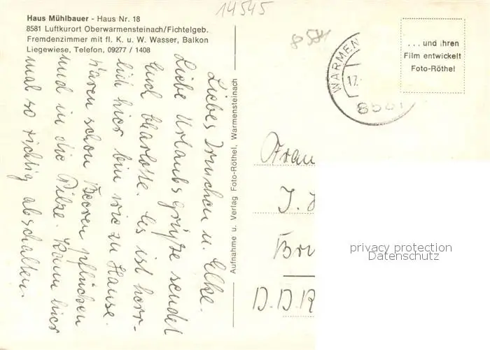 Oberwarmensteinach Haus Muehlbauer Aussenansicht Oberwarmensteinach postalisch gelaufen nach 1965 Erhaltung siehe scans [LiesaD40] LiesID40