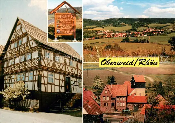 AK / Ansichtskarte Oberweid_Rhoen Fachwerkhaus Teilansicht Landschaftspanorama Oberweid Rhoen