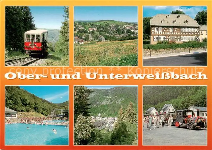 AK / Ansichtskarte Oberweissbach Bergbahn Ortsansicht Froebelmuseum Erlebnisbad Unterweissbach Ortsansicht Lichtetalbahn Oberweissbach