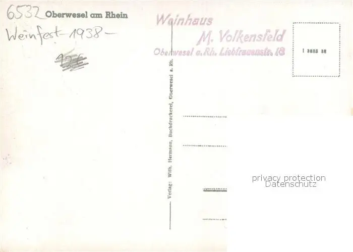 Oberwesel_Rhein Weinmarkt-Weinfest Fachwerkhaus Oberwesel Rhein postalisch nicht gelaufen 1938 Erhaltung siehe scans [LiesaD40] LiesID40