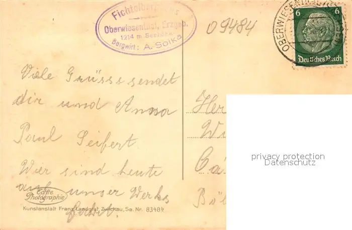 Oberwiesenthal_Erzgebirge Boehmischwiesenthal Fichtelberg Oberwiesenthal Erzgebirge postalisch gelaufen 1921-1965 Erhaltung siehe scans [KathaD81] Kathoren
