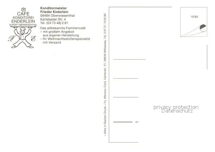 Oberwiesenthal_Erzgebirge Cafe Konditorei Enderlein Oberwiesenthal Erzgebirge postalisch nicht gelaufen nach 1965 Erhaltung siehe scans [WerneD78] WernPID7