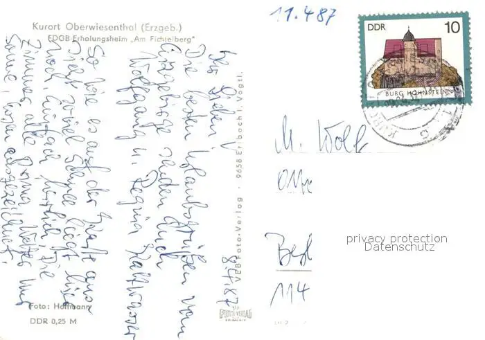 Oberwiesenthal_Erzgebirge FDGB Erholungsheim Am Fichtelberg im Winter Oberwiesenthal Erzgebirge postalisch gelaufen 1987 Erhaltung siehe scans [FriedD77] Frierer