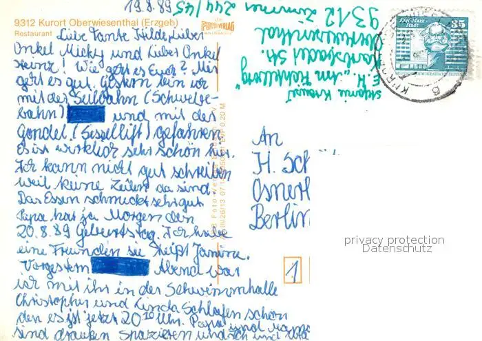 Oberwiesenthal_Erzgebirge FDGB Erholungsheim am Fichtelberg Restaurant Oberwiesenthal Erzgebirge postalisch gelaufen 1989 Erhaltung siehe scans [FriedD77] Frierer