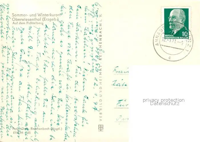 Oberwiesenthal_Erzgebirge Fichtelberg Seilbahn Oberwiesenthal Erzgebirge postalisch gelaufen 1971 Erhaltung siehe scans [LiesaD40] LiesID40