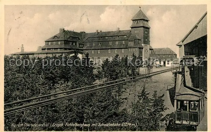 Oberwiesenthal_Erzgebirge Fichtelberghaus mit Schwebebahn Oberwiesenthal Erzgebirge postalisch gelaufen 1921-1965 Erhaltung siehe scans [WerneD78] WernPID7