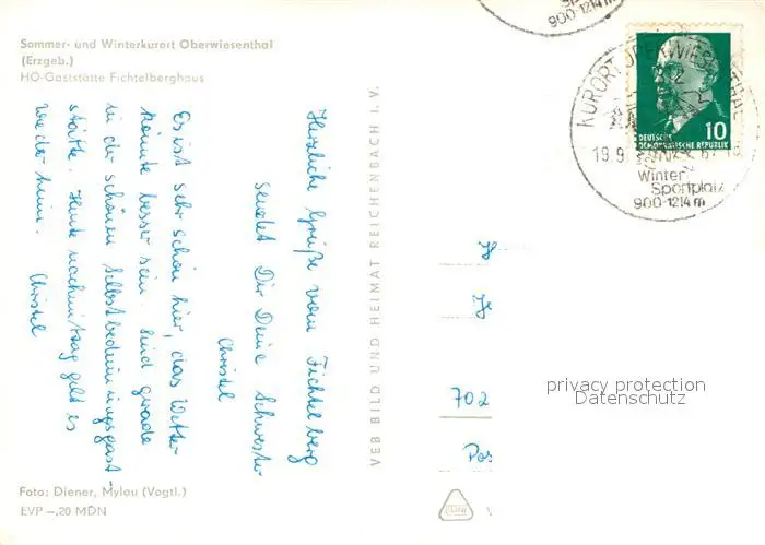Oberwiesenthal_Erzgebirge HO Gaststaette Fichtelberghaus Oberwiesenthal Erzgebirge postalisch gelaufen 1967 Erhaltung siehe scans [KathaD81] Kathoren