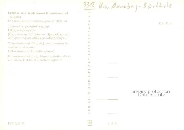 Oberwiesenthal_Erzgebirge HO Gaststaette Fichtelberghaus Oberwiesenthal Erzgebirge postalisch nicht gelaufen nach 1965 Erhaltung siehe scans [FriedD77] Frierer