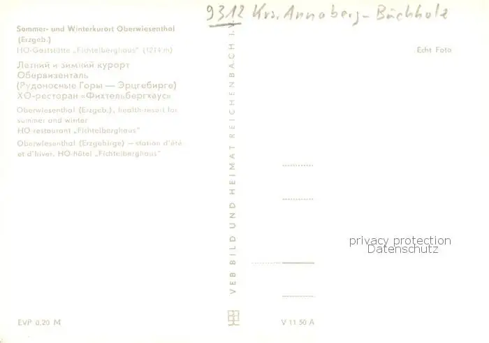 Oberwiesenthal_Erzgebirge HO Gaststaette Fichtelberghaus Restaurant Grillrestaurant Salon Oberwiesenthal Erzgebirge postalisch nicht gelaufen nach 1965 Erhaltung siehe scans [FriedD77] Frierer