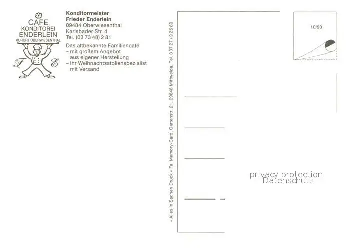 Oberwiesenthal_Erzgebirge Konditorei Kaffee Enderlein Oberwiesenthal Erzgebirge postalisch nicht gelaufen 1993 Erhaltung siehe scans [FriedD77] Frierer