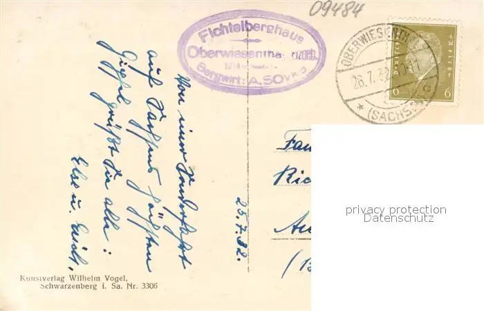 Oberwiesenthal_Erzgebirge Panorama Fichtelberg Oberwiesenthal Erzgebirge postalisch gelaufen 1932 Erhaltung siehe scans [KathaD81] Kathoren