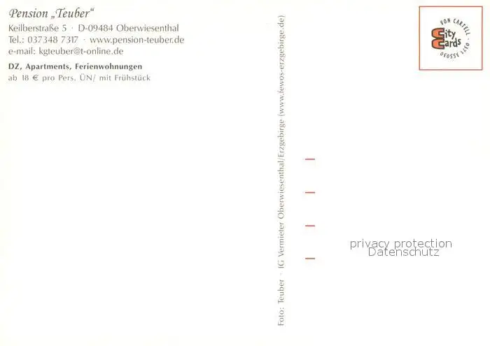 AK / Ansichtskarte Oberwiesenthal_Erzgebirge Pension Teuber Gaststube Zimmer Terrasse Panorama Oberwiesenthal Erzgebirge