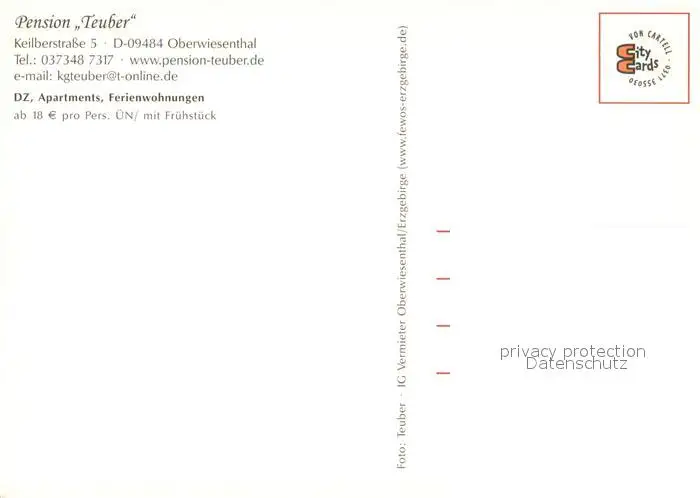 AK / Ansichtskarte Oberwiesenthal_Erzgebirge Pension Teuber Terrasse Gaststube Oberwiesenthal Erzgebirge
