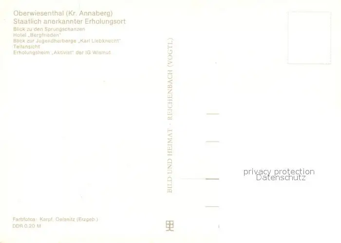 Oberwiesenthal_Erzgebirge Sprungschanze Hotel Bergfrieden Jugendherberge Karl Liebknecht Oberwiesenthal Erzgebirge postalisch nicht gelaufen nach 1965 Erhaltung siehe scans [NatalD47] NataID47
