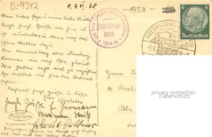 Oberwiesenthal_Erzgebirge Unterkunftshaus auf Fichtelberg Bergabfahrt vom Fichtelberg Gondel Oberwiesenthal Erzgebirge postalisch gelaufen 1938 Erhaltung siehe scans [LiesaD40] LiesID40