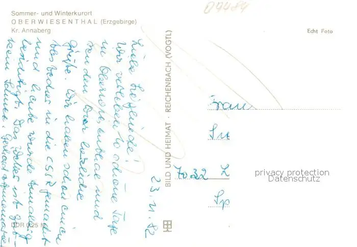 Oberwiesenthal_Erzgebirge Winterpanorama Kurort Oberwiesenthal Erzgebirge postalisch nicht gelaufen 1982 Erhaltung siehe scans [FriedD77] Frierer