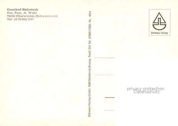 Oberwinden_Elztal Gasthof Rebstock im Schwarzwald Oberwinden Elztal postalisch nicht gelaufen nach 1965 Erhaltung siehe scans [FriedD77] Frierer