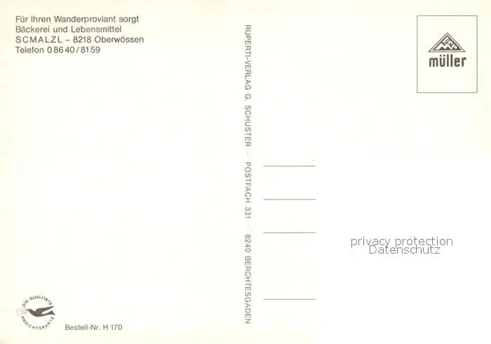Oberwoessen Hochplatte Post-Erholungsheim Baeckerei Scmalzl Oberwoessen postalisch nicht gelaufen nach 1965 Erhaltung siehe scans [LiesaD40] LiesID40