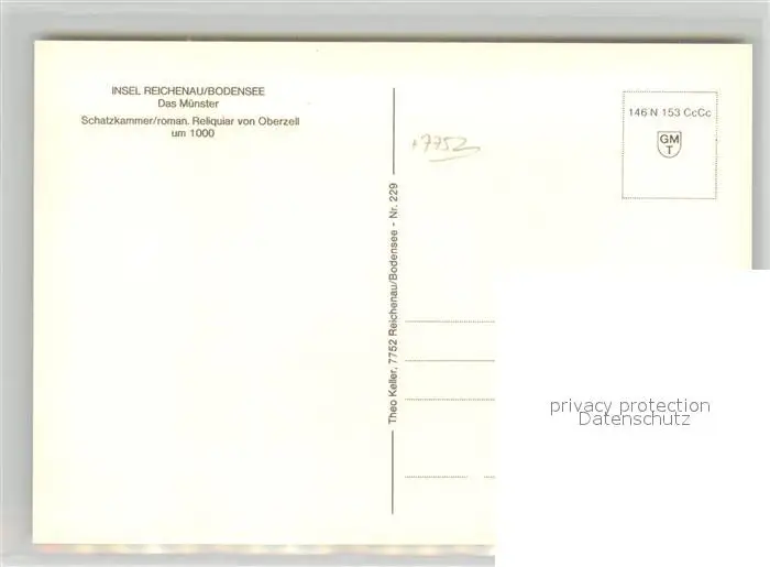 Oberzell_Reichenau Schatzkammer Reliquiar um 1000 Oberzell Reichenau postalisch nicht gelaufen 1921-1965 Erhaltung siehe scans [FriedD77] Frierer