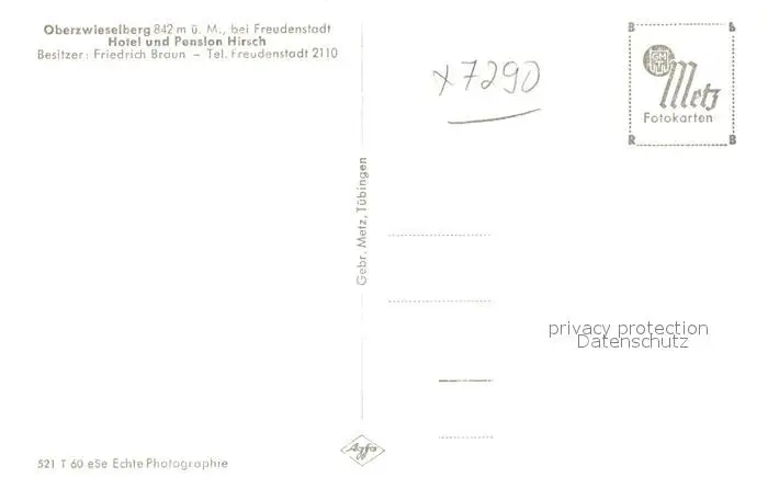 Oberzwieselberg Hotel Pension Hirsch Winterlandschaft Schwarzwald postalisch nicht gelaufen 1921-1965 Erhaltung siehe scans [FriedD77] Frierer