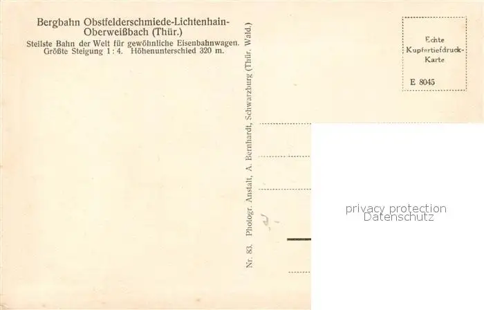 Obstfelderschmiede Bergbahn Eisenbahnwagen Obstfelderschmiede postalisch nicht gelaufen 1921-1965 Erhaltung siehe scans [KathaD81] Kathoren