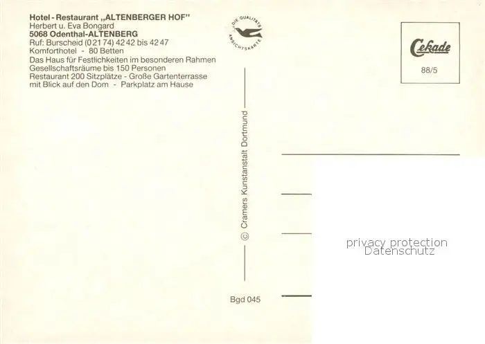 Odenthal Hotel Restaurant Altenberger Hof Odenthal postalisch nicht gelaufen nach 1965 Erhaltung siehe scans [WerneD78] WernPID7