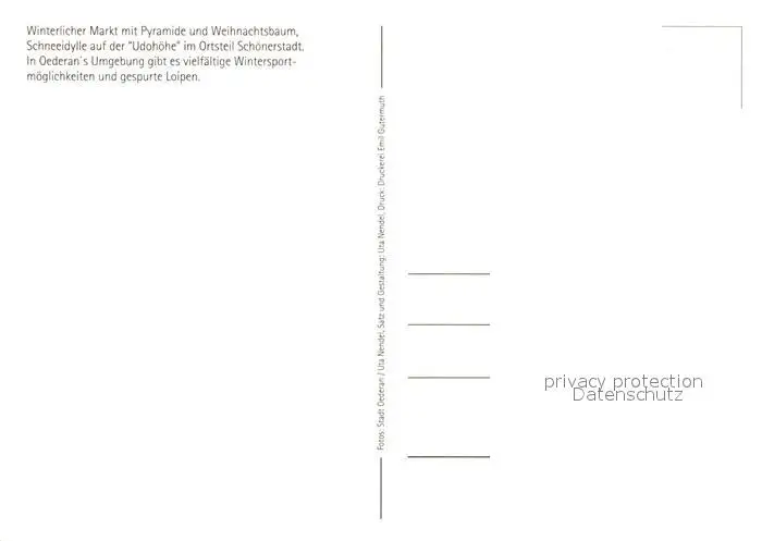 Oederan Markt Pyramide Weihnachtsbaum Winter Schnee Udohoehe Schoenerstadt Oederan postalisch nicht gelaufen nach 1965 Erhaltung siehe scans [KathaD81] Kathoren