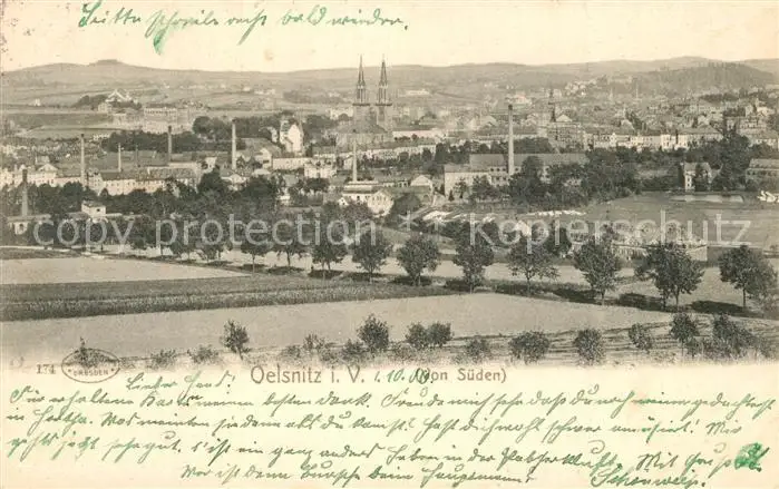 Oelsnitz_Vogtland Panorama Oelsnitz_Vogtland postalisch gelaufen 1906 Erhaltung siehe scans [KathaD81] Kathoren