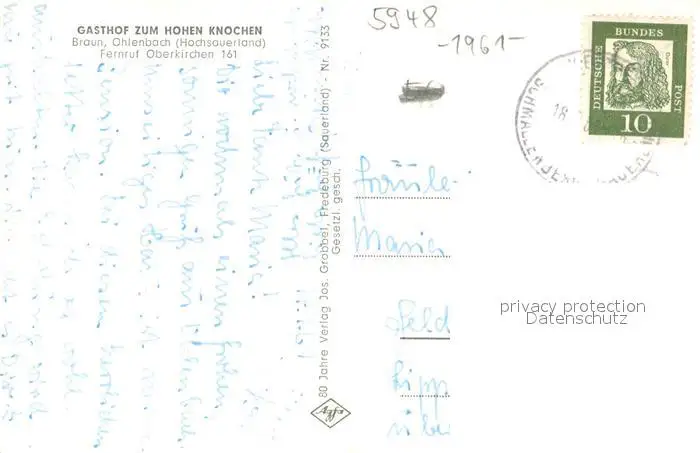 Ohlenbach Gasthof Pension Zum Hohen Knochen Landschaftspanorama Ohlenbach postalisch gelaufen 1961 Erhaltung siehe scans [FriedD77] Frierer