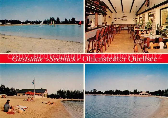 AK / Ansichtskarte Ohlenstedt Gaststaette Seeblick Gastraum Bar Strand Ohlenstedt