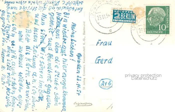 Ohligs Mankhauser Poettanlagen Ohligs postalisch gelaufen 1954 Erhaltung siehe scans [FriedD77] Frierer