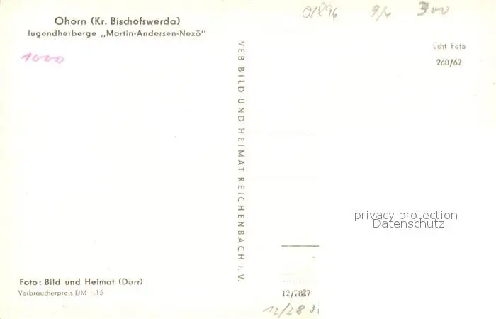 Ohorn Jugendherberge Martin Andersen Nexoe Ohorn postalisch nicht gelaufen 1962 Erhaltung siehe scans [FriedD77] Frierer