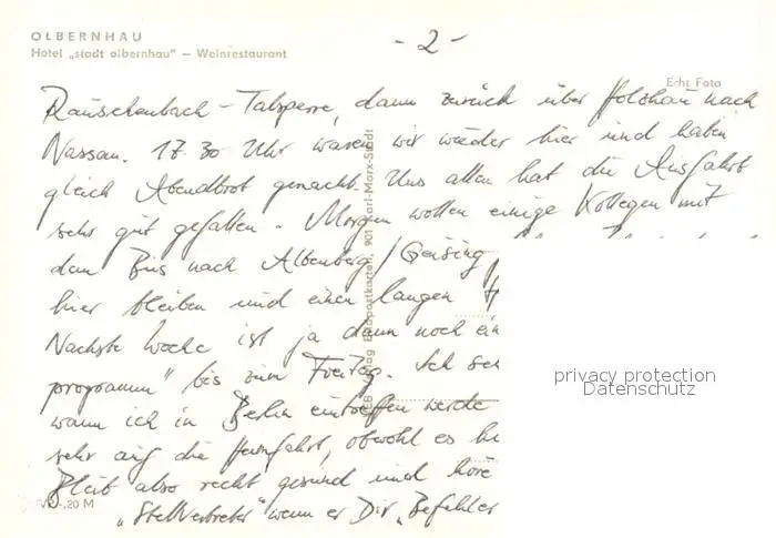 Olbernhau_Erzgebirge Hotel Stadt Olbernhau Weinrestaurant Olbernhau Erzgebirge postalisch nicht gelaufen 1973 Erhaltung siehe scans [FriedD77] Frierer