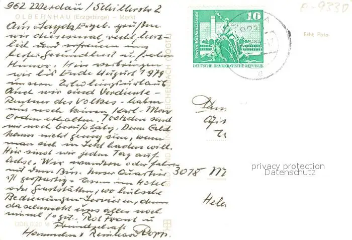 Olbernhau_Erzgebirge Markt Olbernhau Erzgebirge postalisch gelaufen 1979 Erhaltung siehe scans [KathaD81] Kathoren