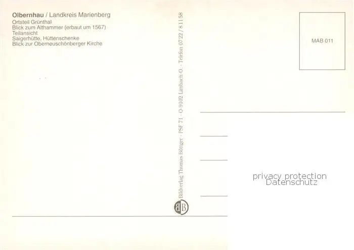 Olbernhau_Erzgebirge OT Gruenthal Althammer Teilansicht Saigerhuette Huettenschenke Oberneuschoenberger Kirche Olbernhau Erzgebirge postalisch nicht gelaufen nach 1965 Erhaltung siehe scans [WerneD78] WernPID7