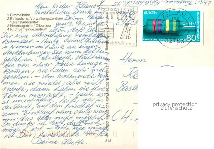 Olbersdorf_Sachsen Bimmelbahn Dampflokomotive Grenzlandcenter Neubaugebiet Gemeindezentrum Tor zum Zittauer Gebirge Olbersdorf Sachsen postalisch gelaufen 1995 Erhaltung siehe scans [FriedD77] Frierer