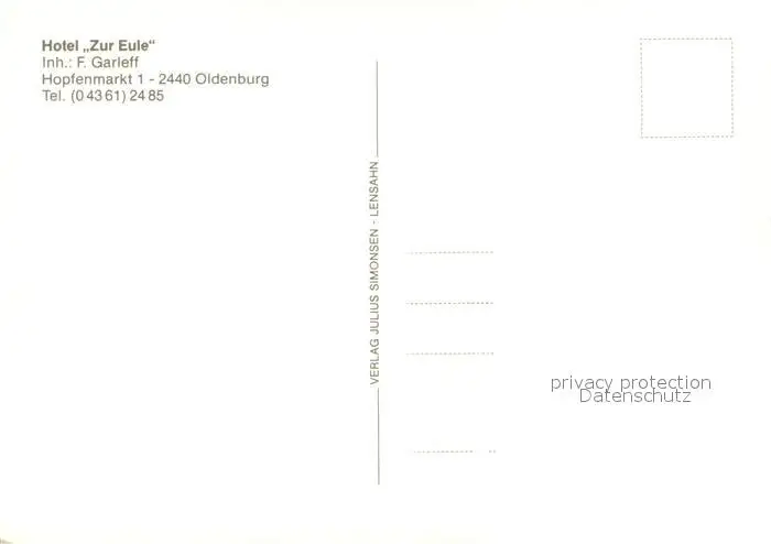 Oldenburg_Holstein Hotel Zur Eule Oldenburg_Holstein postalisch nicht gelaufen nach 1965 Erhaltung siehe scans [WerneD78] WernPID7