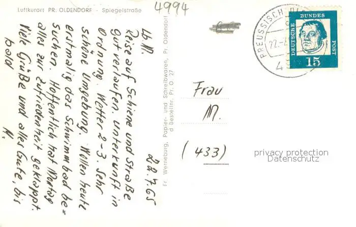 Oldendorf_Preussisch Spiegelstrasse mit Fachwerkhaus postalisch gelaufen 1965 Erhaltung siehe scans [LiesaD40] LiesID40