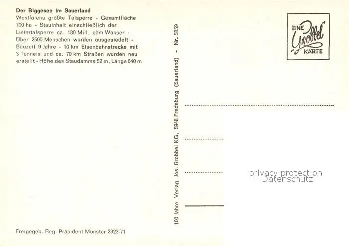 Olpe_Biggesee Westfalens groesste Talsperre Fliegeraufnahme Olpe Biggesee postalisch nicht gelaufen nach 1965 Erhaltung siehe scans [FriedD77] Frierer