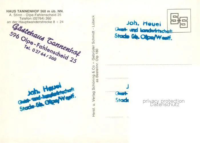 Olpe__Stadt Gaestehaus Tannenhof Gastraeume Panorama postalisch nicht gelaufen nach 1965 Erhaltung siehe scans [WerneD78] WernPID7