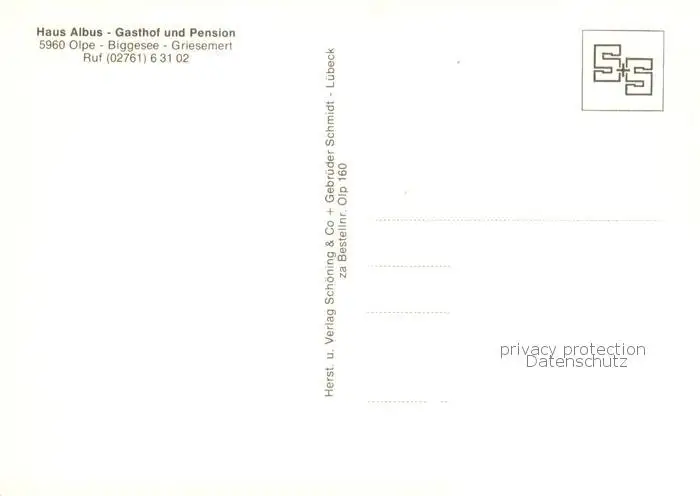 Olpe__Stadt Haus Albus Gasthof und Pension Gastraeume postalisch nicht gelaufen nach 1965 Erhaltung siehe scans [WerneD78] WernPID7