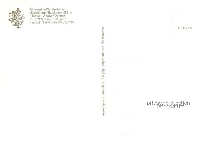 Onstmettingen Albvereins Wanderheim Naegelehaus Raichberg Fliegeraufnahme Onstmettingen postalisch nicht gelaufen nach 1965 Erhaltung siehe scans [FriedD77] Frierer