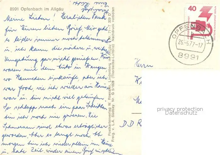 Opfenbach Fliegeraufnahme Opfenbach postalisch gelaufen 1977 Erhaltung siehe scans [WerneD78] WernPID7