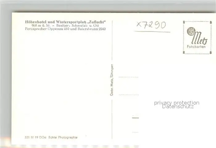 Oppenau Hoehenhotel Zuflucht Oppenau postalisch nicht gelaufen 1921-1965 Erhaltung siehe scans [KathaD81] Kathoren