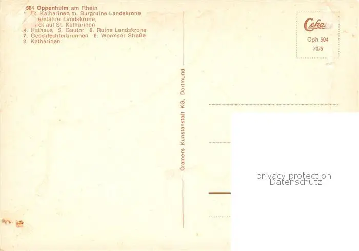 Oppenheim 1200 Jahre Weinstadt St Katharinen Kirche Burgruine Landskrone Rheinfaehre Rathaus Gautor Geschlechterbrunnen Wormser Strasse Oppenheim postalisch nicht gelaufen 1970 Erhaltung siehe scans [FriedD77] Frierer