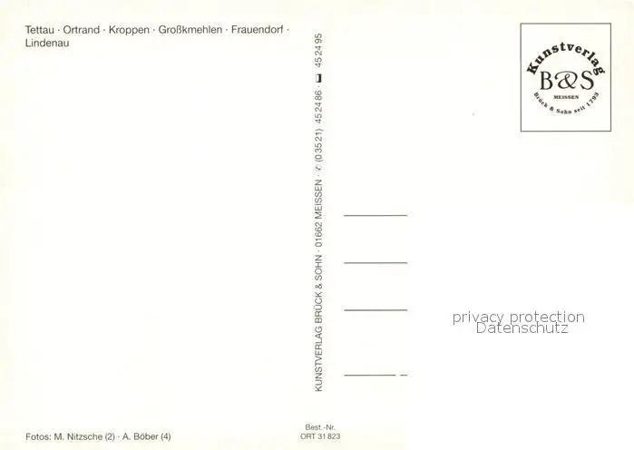 Ortrand Tettau Kroppen Grosskmehlen Frauendorf Lindenau Ortrand postalisch nicht gelaufen nach 1965 Erhaltung siehe scans [KathaD81] Kathoren