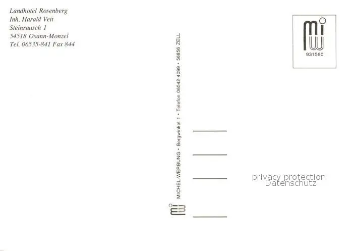 Osann-Monzel Landhotel Rosenberg Panorama Hallenbad Osann-Monzel postalisch nicht gelaufen nach 1965 Erhaltung siehe scans [WerneD78] WernPID7
