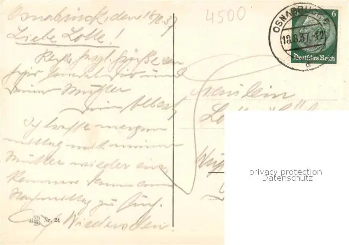 Osnabrueck Gesamtansicht Stadtpanorama Osnabrueck postalisch gelaufen 1937 Erhaltung siehe scans [FriedD77] Frierer